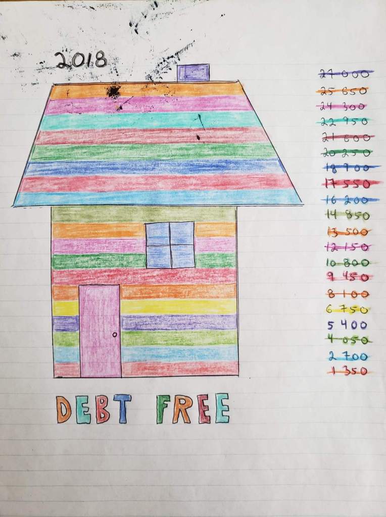 Avec mon talent  incroyable en dessein , j’ai dessiné une petite maison sur une feuille lignée pour le sprint final. A chaque ligne était inscrit un montant d’argent qui représentait le solde restant. Je coloriais petit à petit, une ligne à la fois au fur et à mesure que ma dette diminuait.  J’avais donc un visuel sur ma progression. J’avais une maison en thermomètre. Plus la maison était coloriée, plus j’étais encouragé à poursuivre. C’est vraiment enfantin je sais. Ne le dites pas à personne!